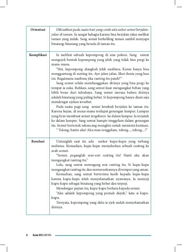 Struktur cerita ini sama dengan teks narasi karena terdiri dari konflik, orientasi, .